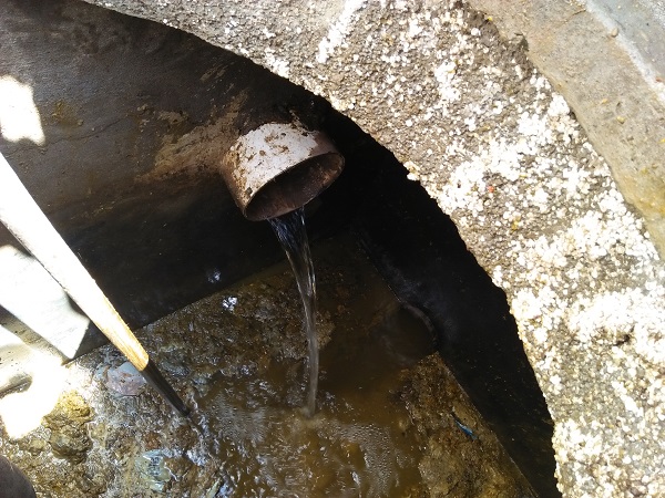 5、然后用約5米長的竹竿插入化糞池,以獲取化糞池中的污垢和污水的深度。